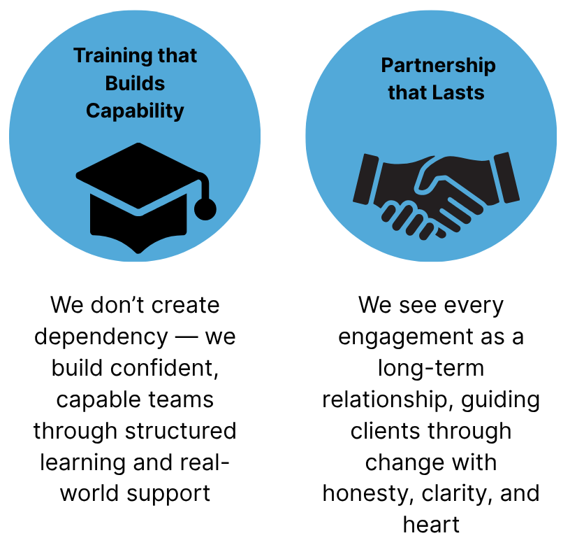 Structured online courses, live training (where appropriate), and accelerated workshops for individuals (Virtual and live) and teams. Each path includes practical assignments, downloadable templates, and a certificate of completion.